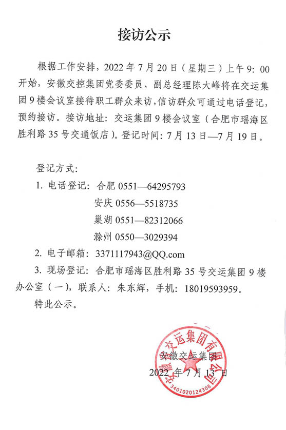 交控領導接訪告示